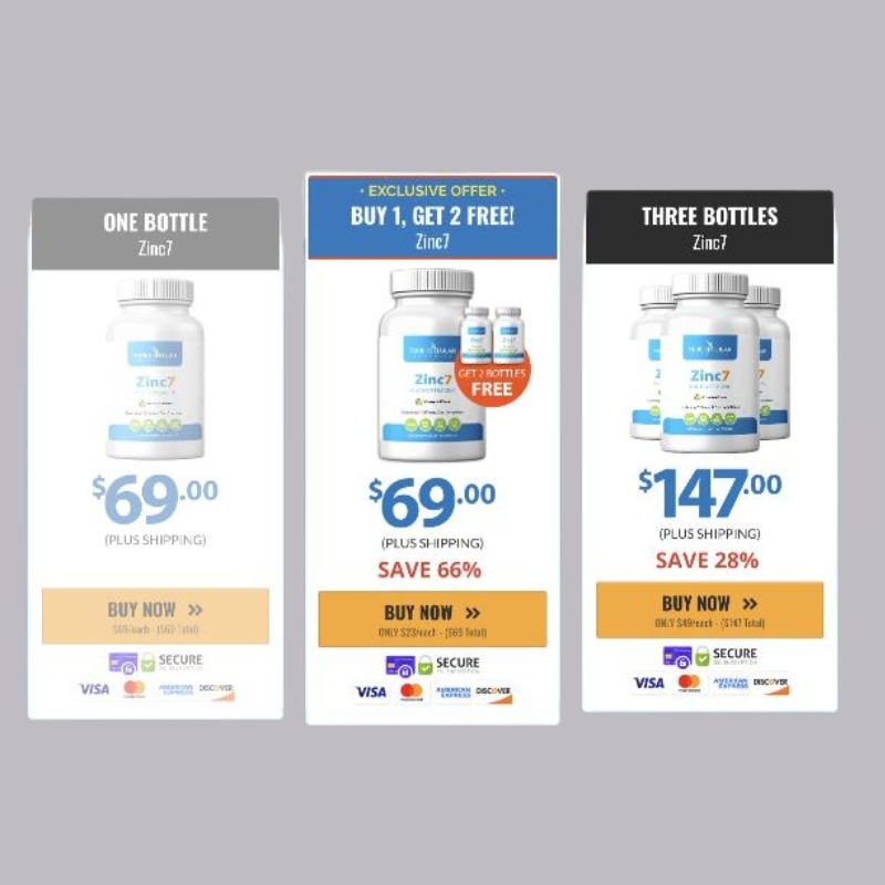 These pricing options make it easier for you to choose the best fit for your fitness journey while ensuring you receive the maximum benefits from Zinc7. Whether you opt for the single bottle or the exclusive buy-one-get-two-free offer, you're investing smartly towards a healthier and more vibrant lifestyle.